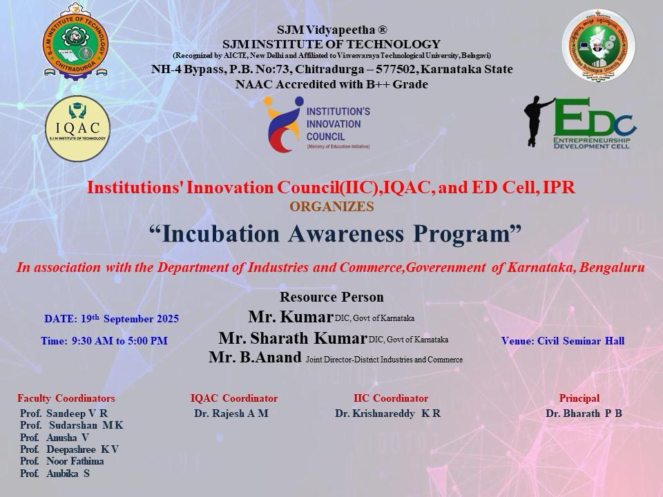 The Incubation Awareness Program was organized to spread knowledge about incubation facilities, entrepreneurial opportunities, and the support ecosystem available for budding innovators and startups. The event aimed to create awareness among students, researchers, and aspiring entrepreneurs about how incubation centers play a vital role in transforming innovative ideas into viable business ventures.