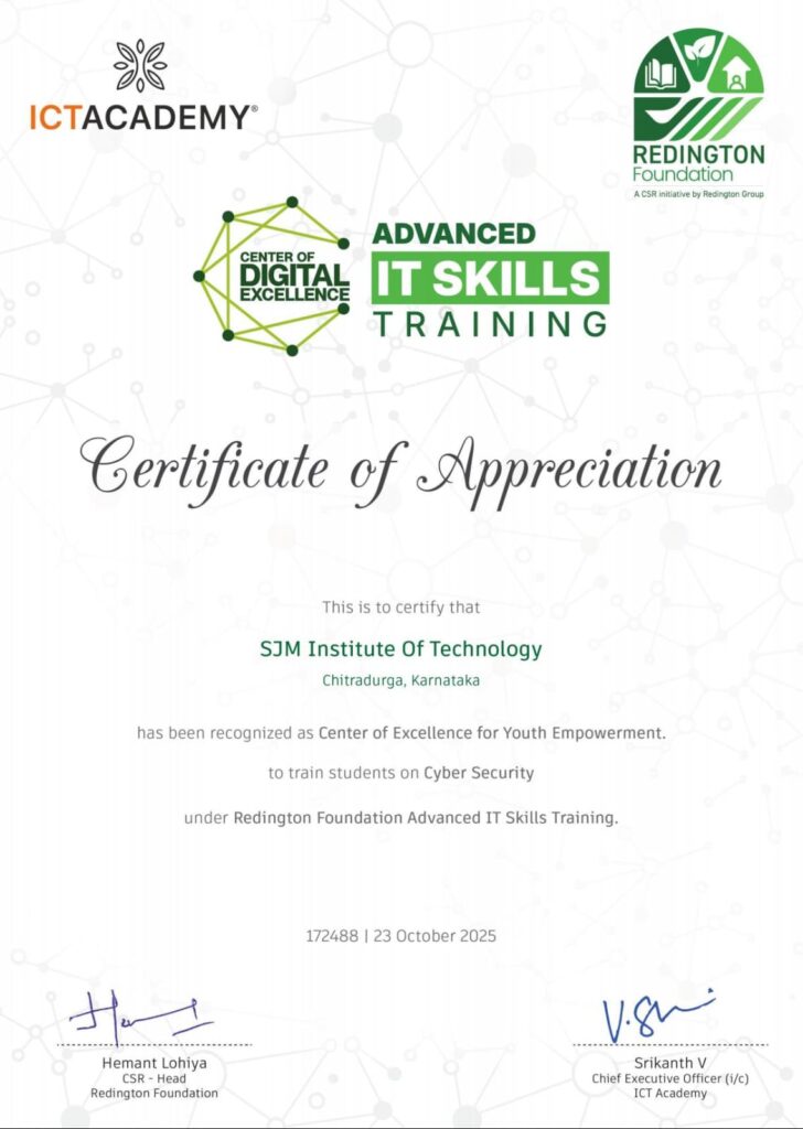 We are delighted to share glimpses from the successful establishment of the Center of Excellence (CoE) and the inauguration of the “Cyber Security and Soft Skills Training Program” by ICT ACADEMY held at our institution. 🎉 Our sincere gratitude to our Principal, Heads of Departments, Training & Placement team, teaching and non-teaching staff, students &