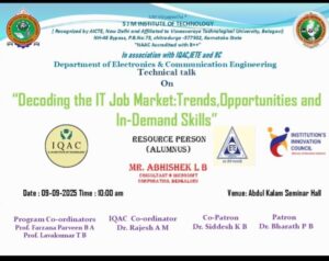Technical talk on “Decoding the IT job Market: Trends Opportunities and In-Demand Skills” was organized by Electronics and Communication Engineering Department on “09/09/2025” at 10AM in Abdul Kalam seminar hall.