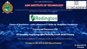 We are delighted to announce that Redington Foundation has signed a Memorandum of Understanding (MoU) with the ICT Academy to implement its Corporate Social Responsibility (CSR) initiative through the Advanced IT Skills Training Program at SJMIT Chitradurga.