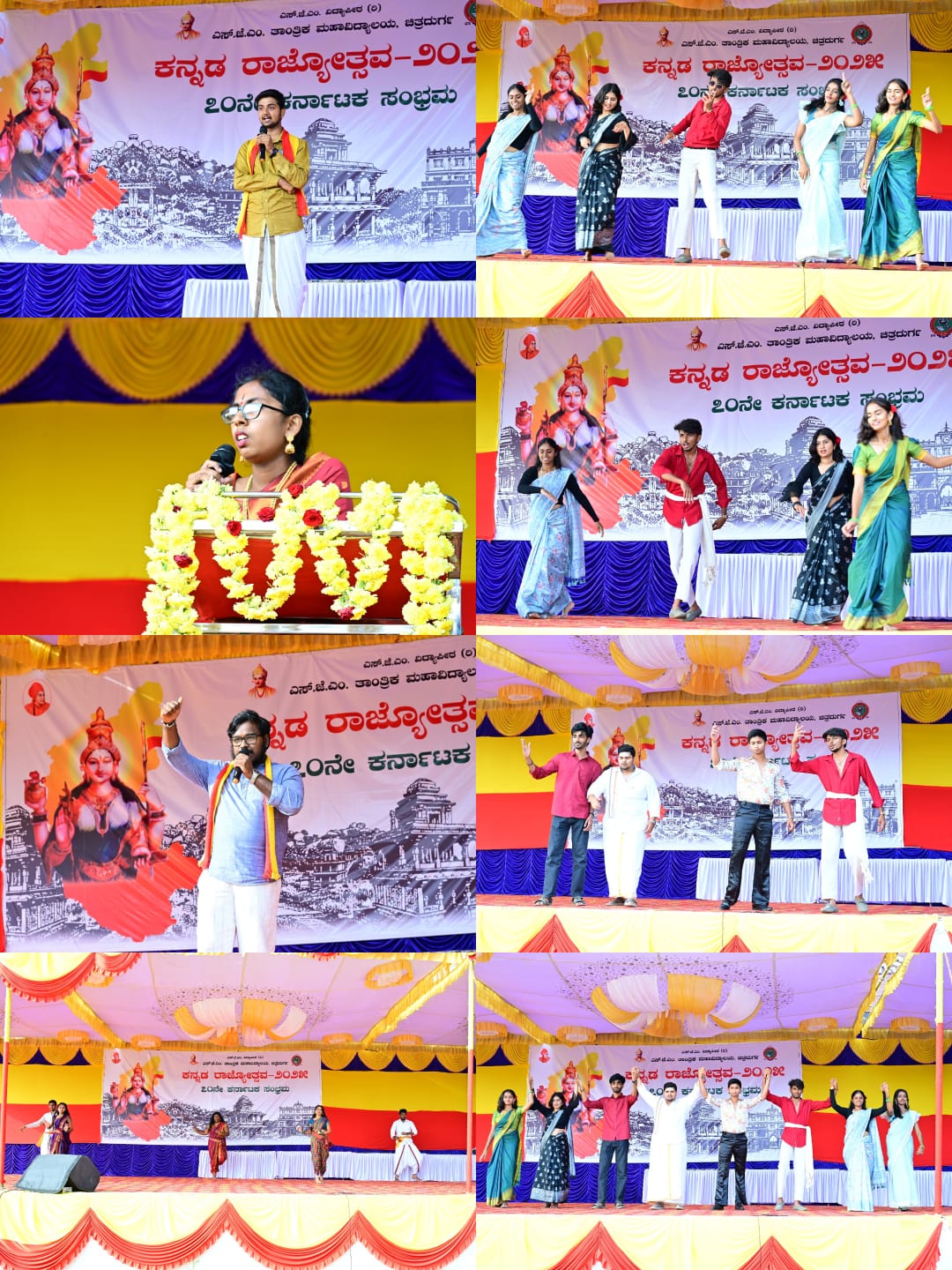 The program began gracefully by offering respects to the portrait of Mother Bhuvaneshwari. The event included the singing of the Nada Geethe, speeches highlighting the importance and heritage of the Kannada language, dance, and various cultural performances. Students and faculty members participated actively and enthusiastically, celebrating the essence of Kannada culture and tradition.