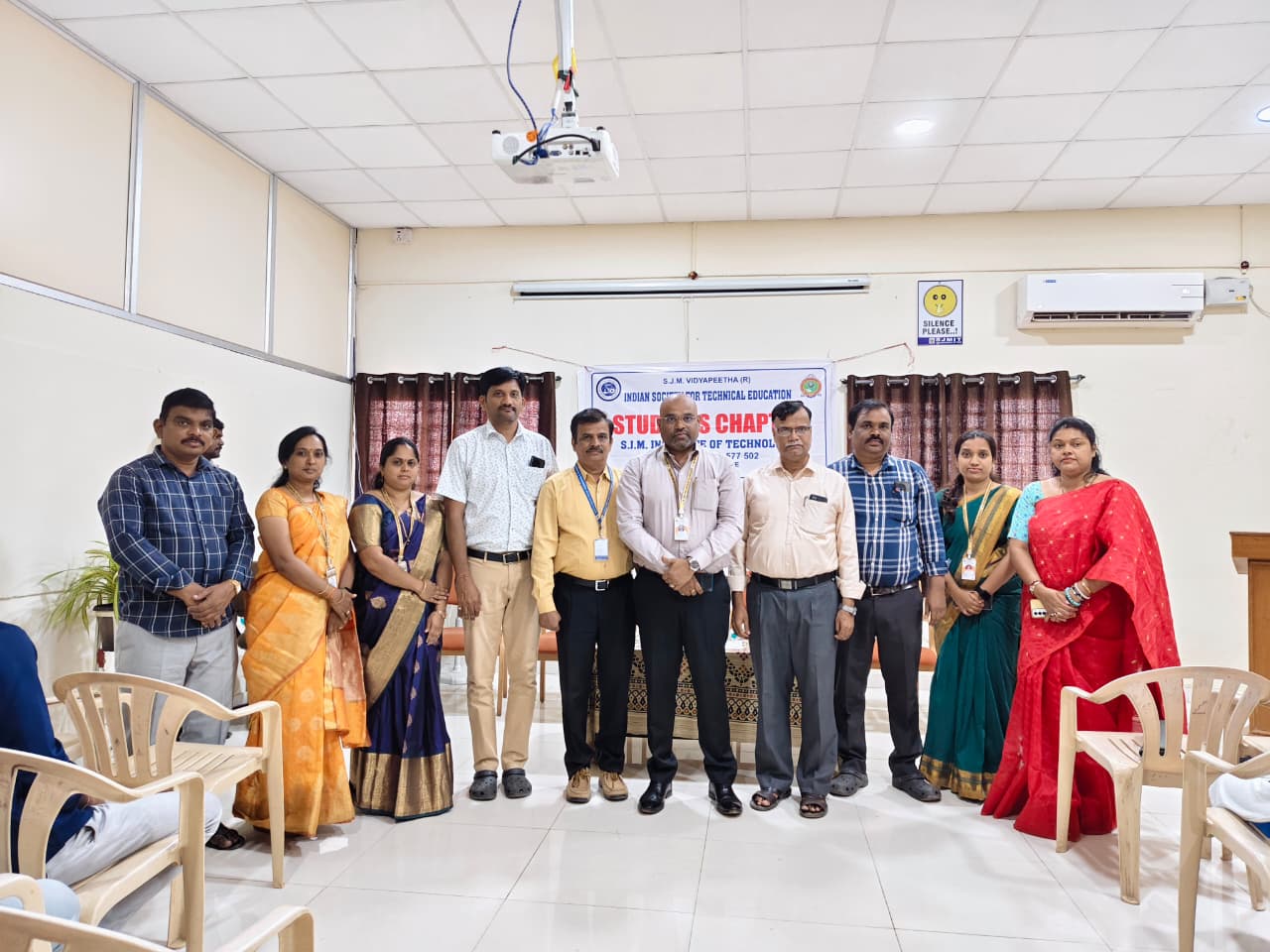 The event was conducted under the guidance and support of Dr. Bharath P. B., Principal, SJMIT, along with coordination from Mrs. Sudha T (Dept. ISTE Coordinator), Mrs. Roopa S (ISTE Faculty Advisor), Dr. Kumaraswamy B. G (Professor & HOD), and Dr. Rajesh A. M (IQAC Coordinator).