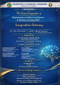 The SJM Institute of Technology, Chitradurga, proudly announces the Grand Inauguration of the Department of Artificial Intelligence & Machine Learning (AIML) — a significant milestone in advancing cutting-edge education and innovation in emerging technologies.